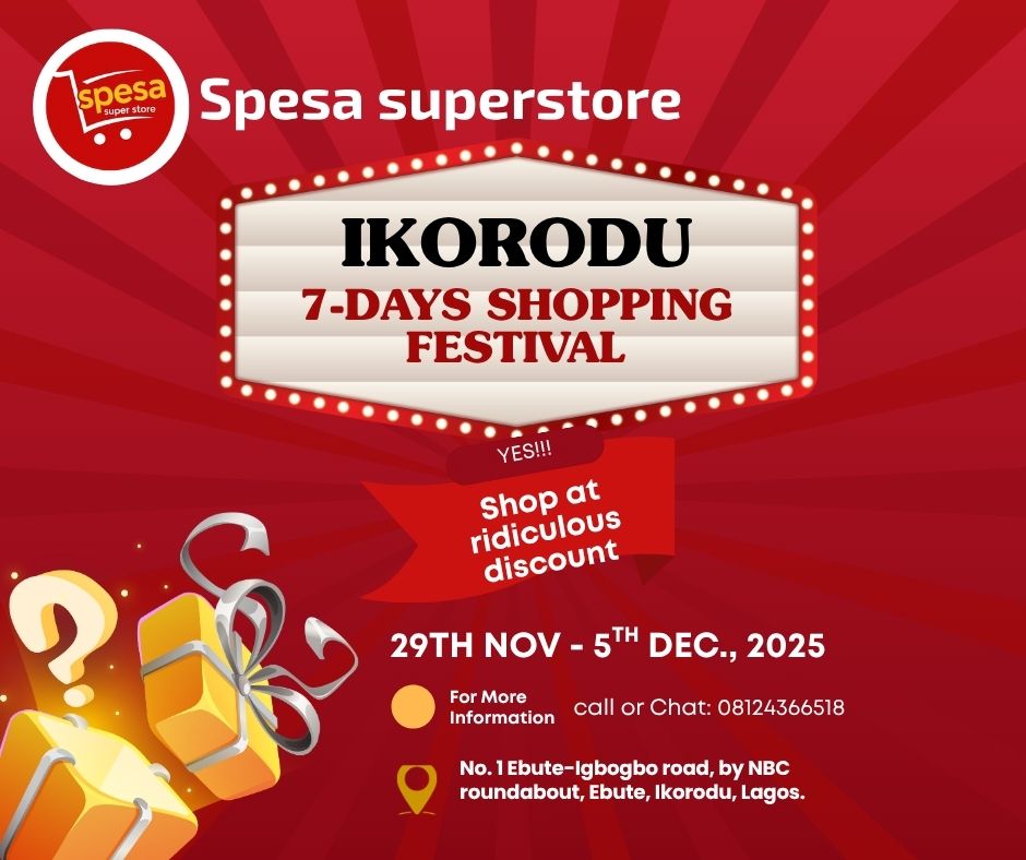Hello, Ikorodu! Spesa Superstore is thrilled to officially introduce itself as your new neighbourhood superstore, right here at Igbogbo/Ibeshe Roundabout, Ikorodu, Lagos. At the Ikorodu Shopping Festival, we will be stocking high-quality groceries, fresh produce, essential household items, beauty products, and much more — all offered at discounted prices.